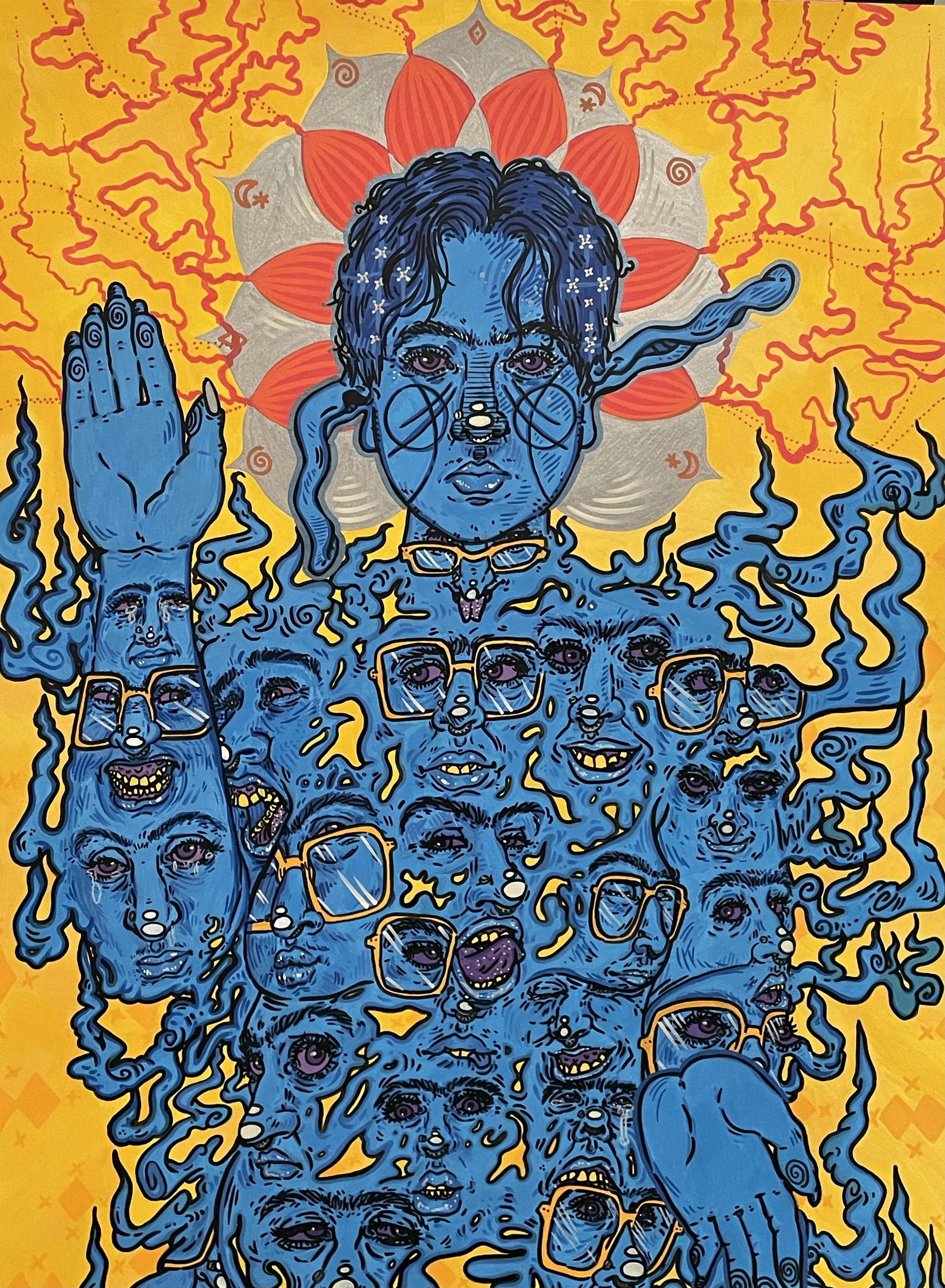 Hassan Abu-Judom is Palestinian-American visual artist that indulges their work within a self-portrait matter through depicting herself as a goblin persona. Each piece tells a personal story of subjects such as sexual or gender orientation, Middle Eastern cultural identity and struggles, memories, and dreamscapes. Abu-Judom’s goblins with their side of lowbrow iconography tells a different story every time in hopes of the viewer finding relatability and curiosity either with the works of the artist or through a connection between the viewer and the piece itself.
